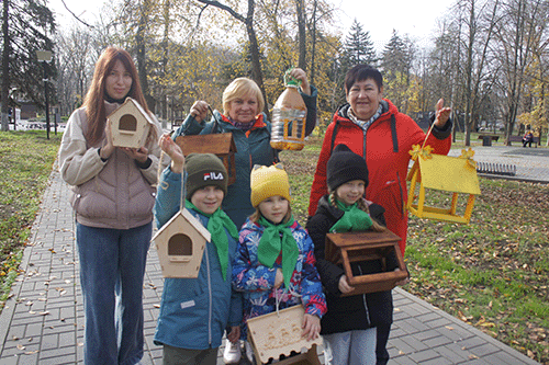 Организацией общественного питания для белок и птиц вместе с новоходцами стали воспитанники Центра технического творчества им.Горбатко со своими педагогами и родителями и малыши детского сада №47