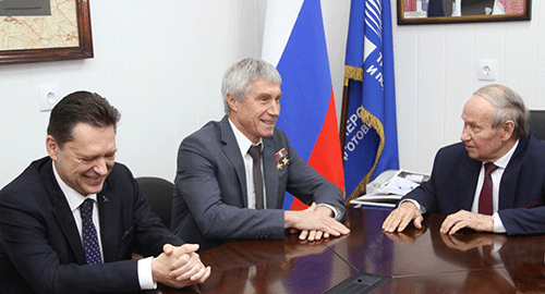 В гостях у Центра тренажеростроения — специальный представитель Президента РФ по вопросам международного сотрудничества в области космоса, летчик-космонавт, Герой Советского Союза, Герой Российской Федерации С.К. Крикалев и начальник Центра подготовки космонавтов имени Ю.А. Гагарина М.М.Харламов
