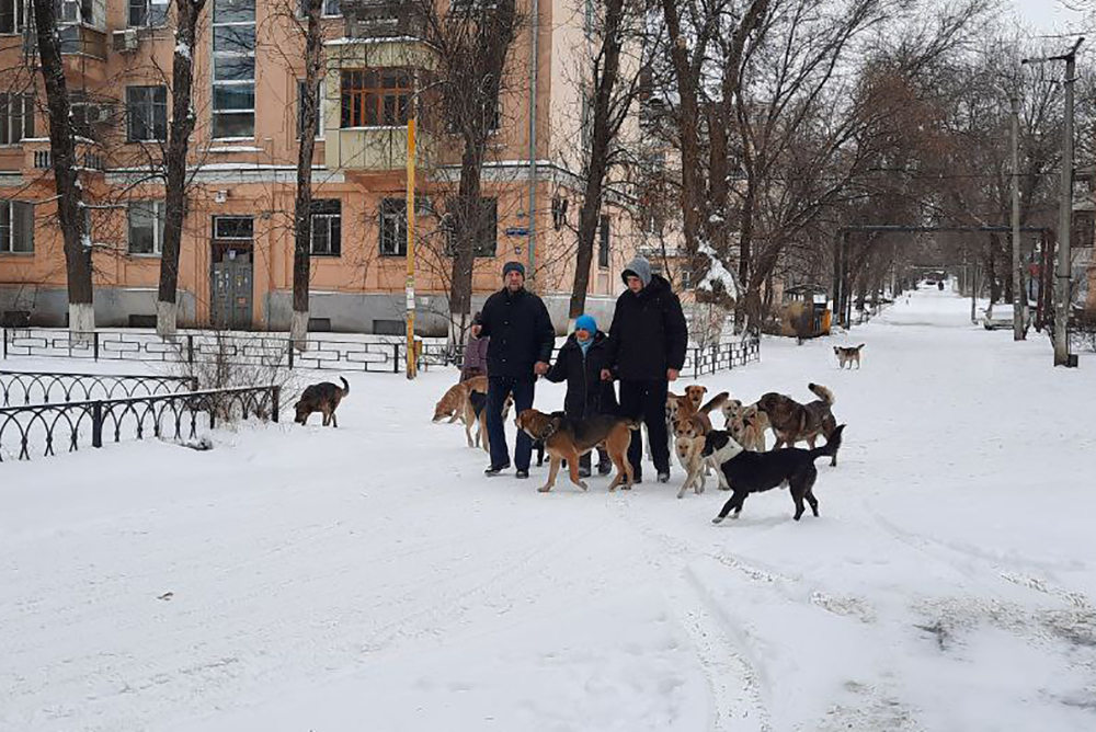 Эти фото прислали в ДН читатели. Первая мысль — мир не без добрых людей: молодые люди вывели плачущую старушку из окружившей ее собачьей стаи.